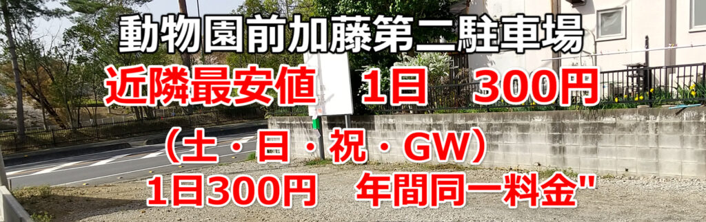 埼玉県こども動物自然公園まで徒歩1分の近隣駐車場最安値1日300円 土・日・祝 GW 値段変わらず 1日300円
